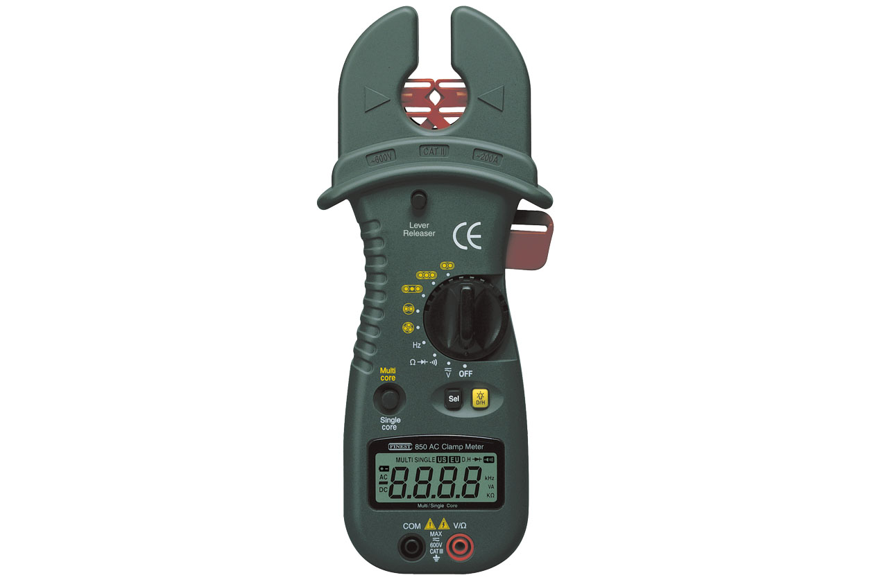 F850是一款手持式和電池供電的數(shù)字交流鉗形表,用于測(cè)量多芯電纜和電源線中的電流,用戶無(wú)需拆分它們以及單芯電纜和電源線。 該儀表可測(cè)量高達(dá)100A的2芯或3芯圓形扁平或雙芯和地線電流,分辨率為0.1A。