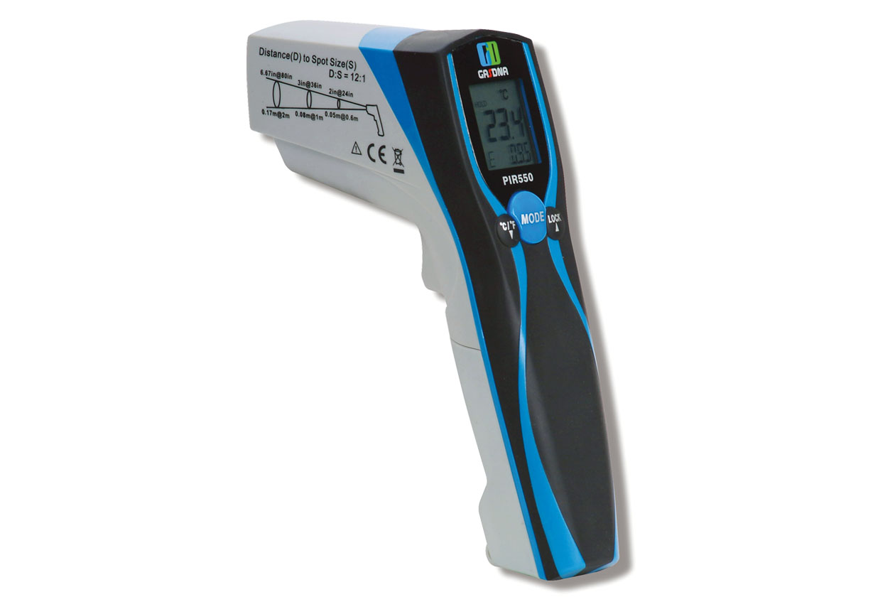 PIR550紅外測(cè)溫儀 PIR550紅外測(cè)溫儀 PIR550手持式紅外測(cè)溫儀是進(jìn)行溫度測(cè)量的高性價(jià)比工具,在測(cè)量溫度量程為-60至550℃內(nèi)可以獲得精確的測(cè)量結(jié)果,距離系數(shù)為12:1,具有最大值、最小值、差值和平均值測(cè)量模式。 PIR550帶激光瞄準(zhǔn)器和背光顯示,CE認(rèn)證。PIR550簡(jiǎn)便易用、攜帶方便,是經(jīng)濟(jì)型號(hào)的理想選擇。