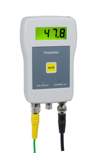 E2001靜電槍高壓計在噴槍頂端安全快捷地測量任何靜電噴槍的電壓,因為頂端的靜電壓必須保證正確無誤。噴槍的高壓可達100KV,可充電或放電。使用E2001靜電槍高壓計可以快速準確測量出噴槍的實際電壓。在負載情況下測量噴槍的實際電壓,可測試出靜電噴槍的功效如何。有很多原因導致噴槍的電壓不準確。錯誤的校準,灰塵和油污,電纜接觸不良,電纜斷裂等,都會影響噴槍電壓但又不會在噴涂設備上顯示出來。