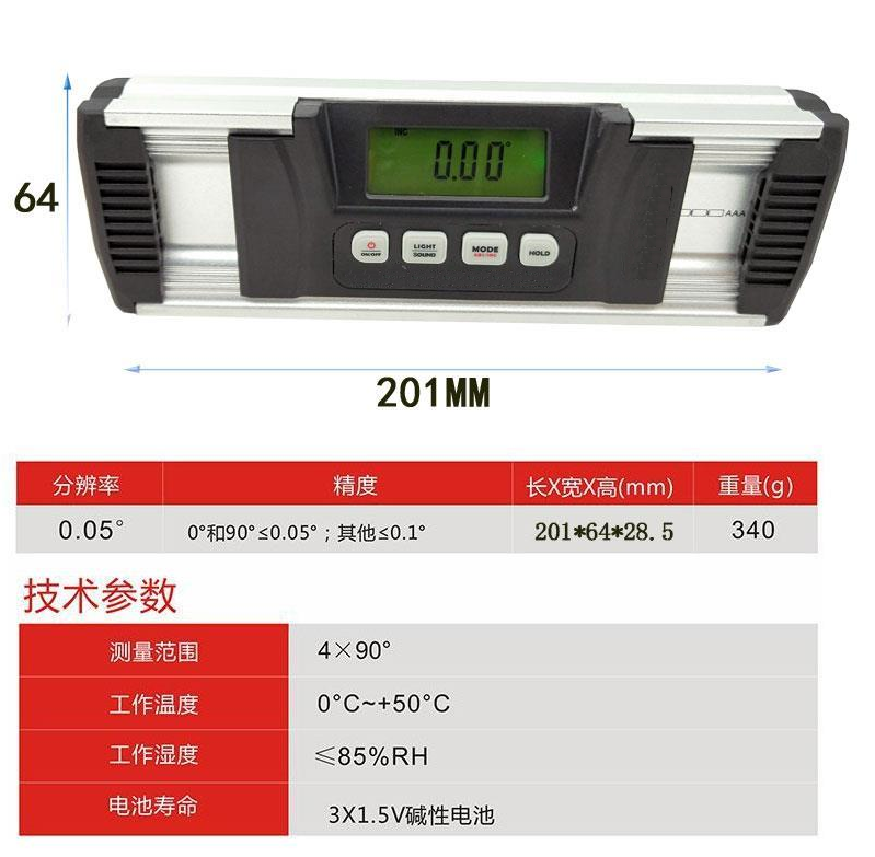 5、讀數(shù)值:0.01°, 測量精度:0.1°