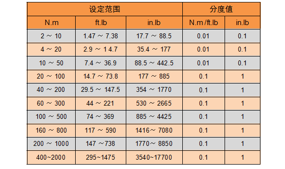 扭力測(cè)量范圍